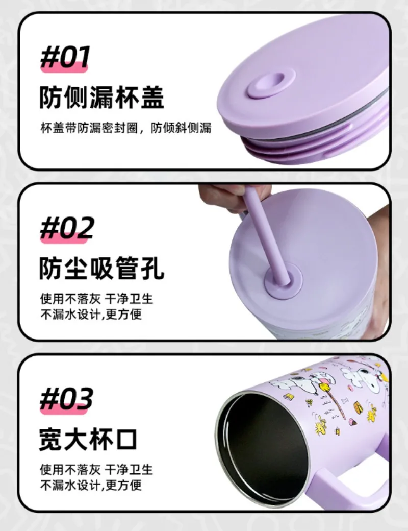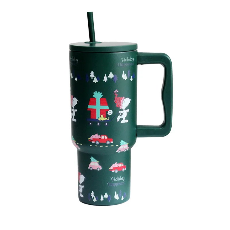 1200ml Snoopy Vacuum Flasks Cartoon Thermos Bottle Sports 304 Stainless Steel Water Bottle with Straw Handle Travel Car Ice Cup