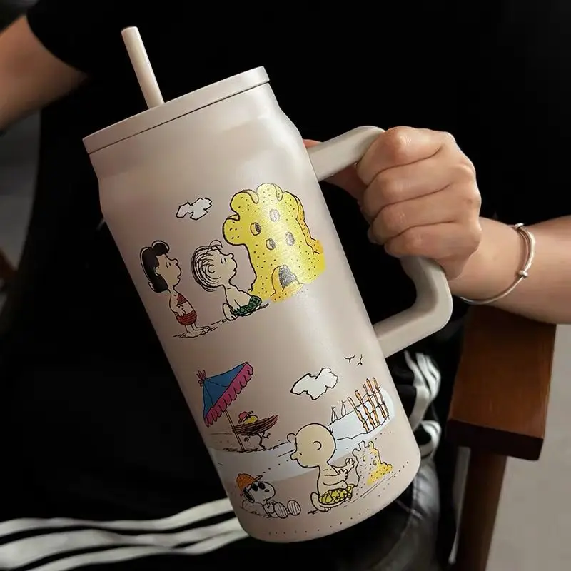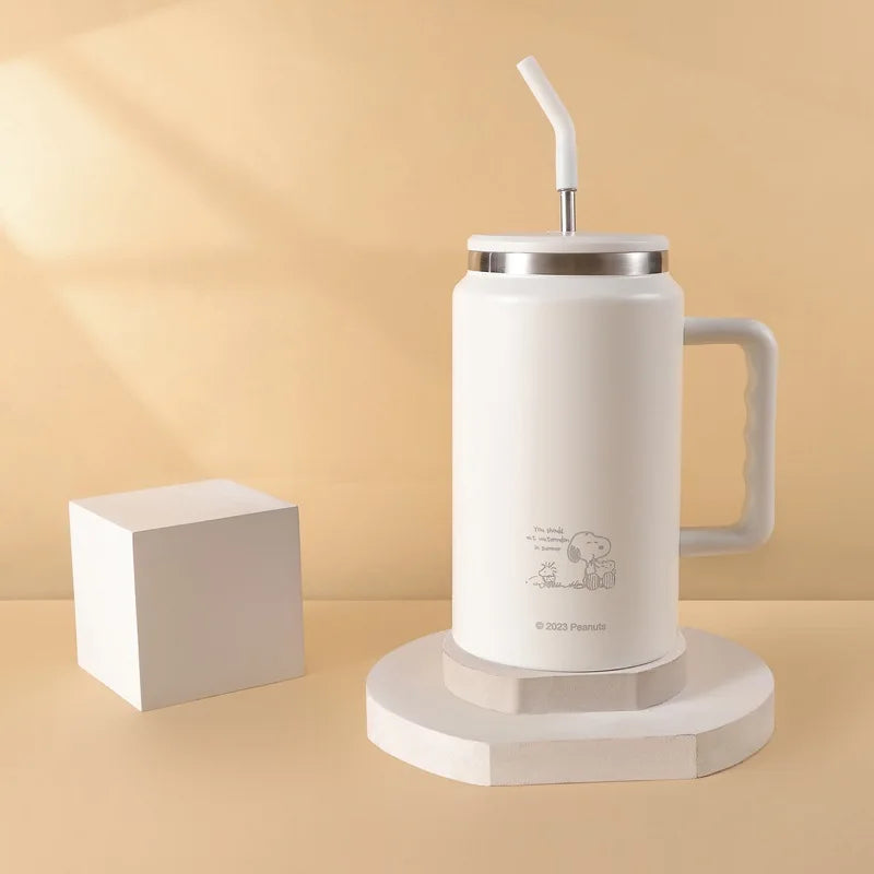 1500ml Snoopy Thermos Bottle Large Capacity Vacuum Flasks Travel 304 Stainless Steel Vacuum Insulated Cup with Handle and Straw