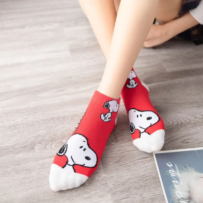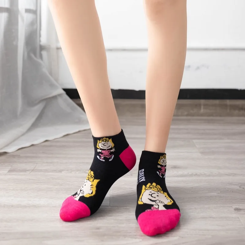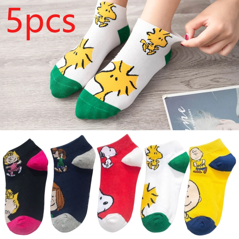 5 Pairs Snoopy Socks Cartoon Cotton Short Socks Breathable Sport Invisible Running Sock Summer Comfortable Casual Ankle Socks