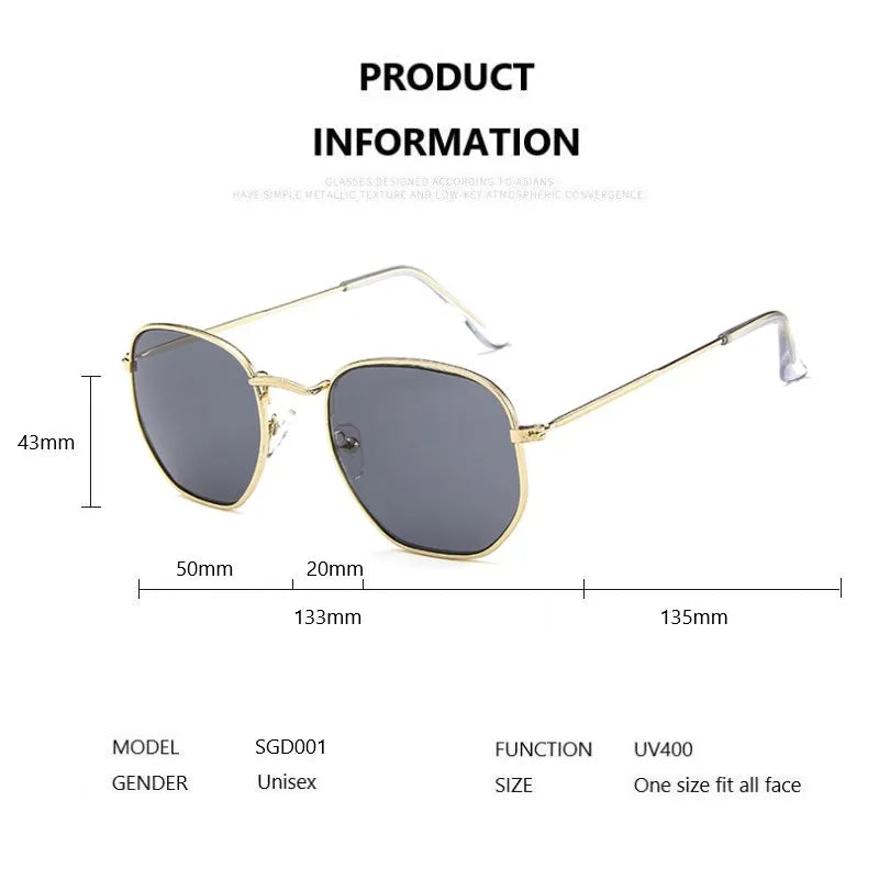 Hexagon Sunglasses Men Brand Designer Small Square Sunglases Metal Frame Driving Fishing Glasses Lentes De Sol Hombre UV400