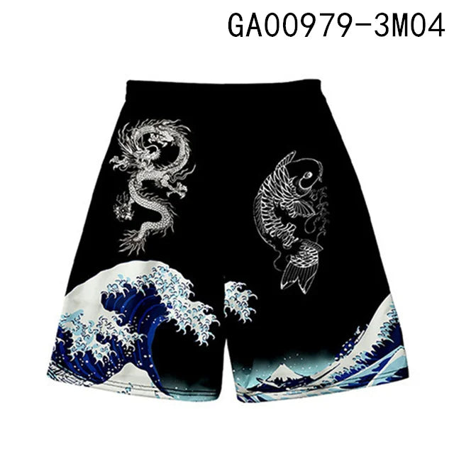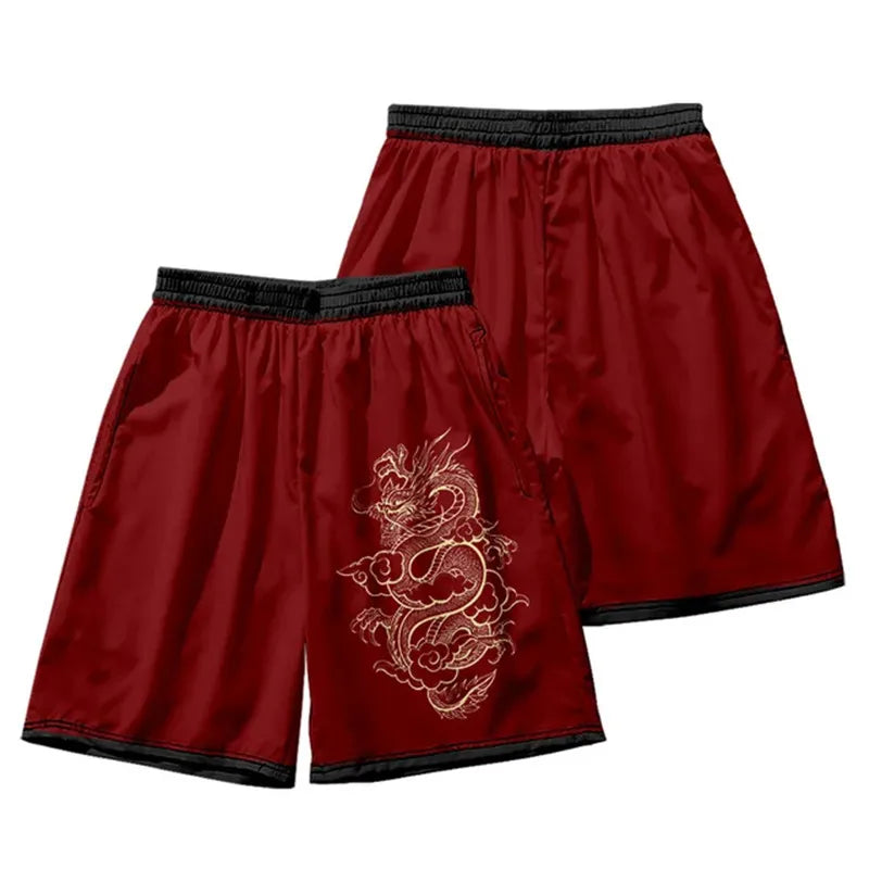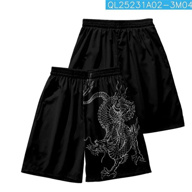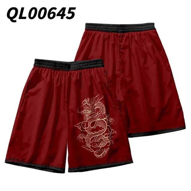 New men's summer shorts loose and luxurious shorts 3D printed casual chinese dragon print Harajuku ancient style shorts