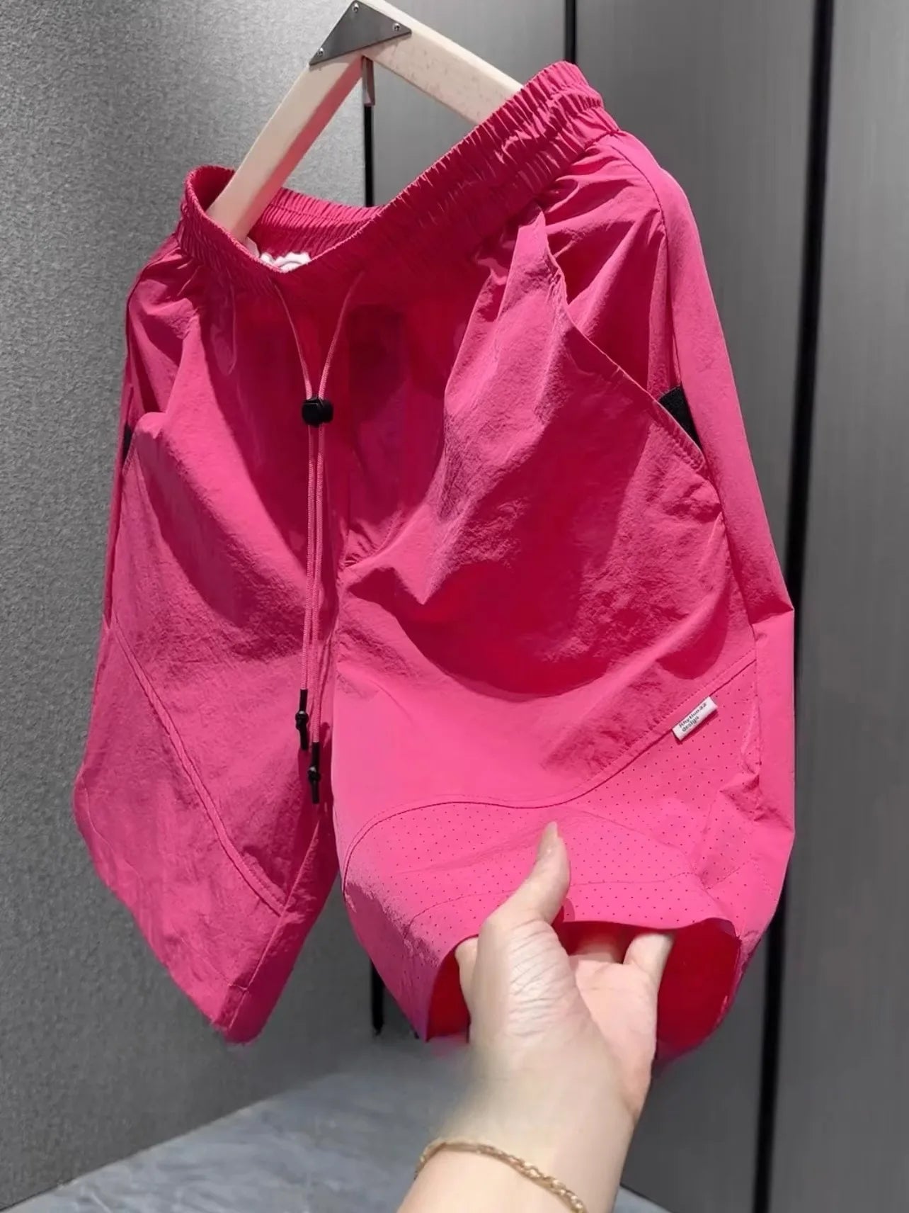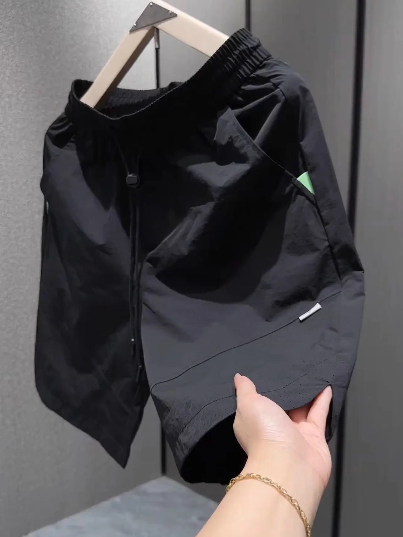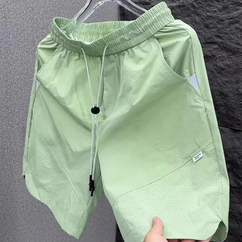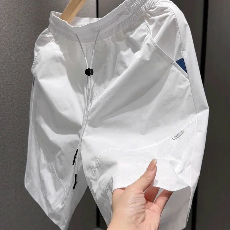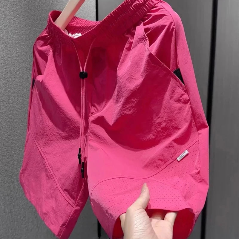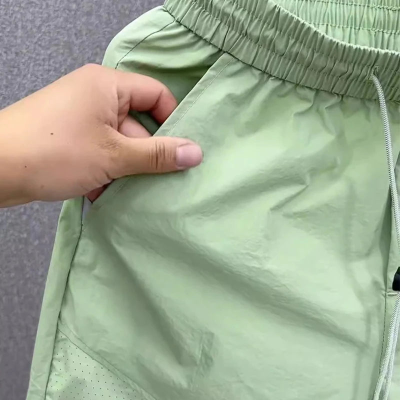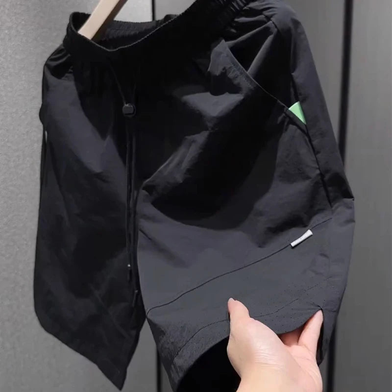 Summer New Men Workwear Shorts Trend Korean Solid Casual Loose Pockets Knee Length Pants Versatile Quick-drying Black Trousers